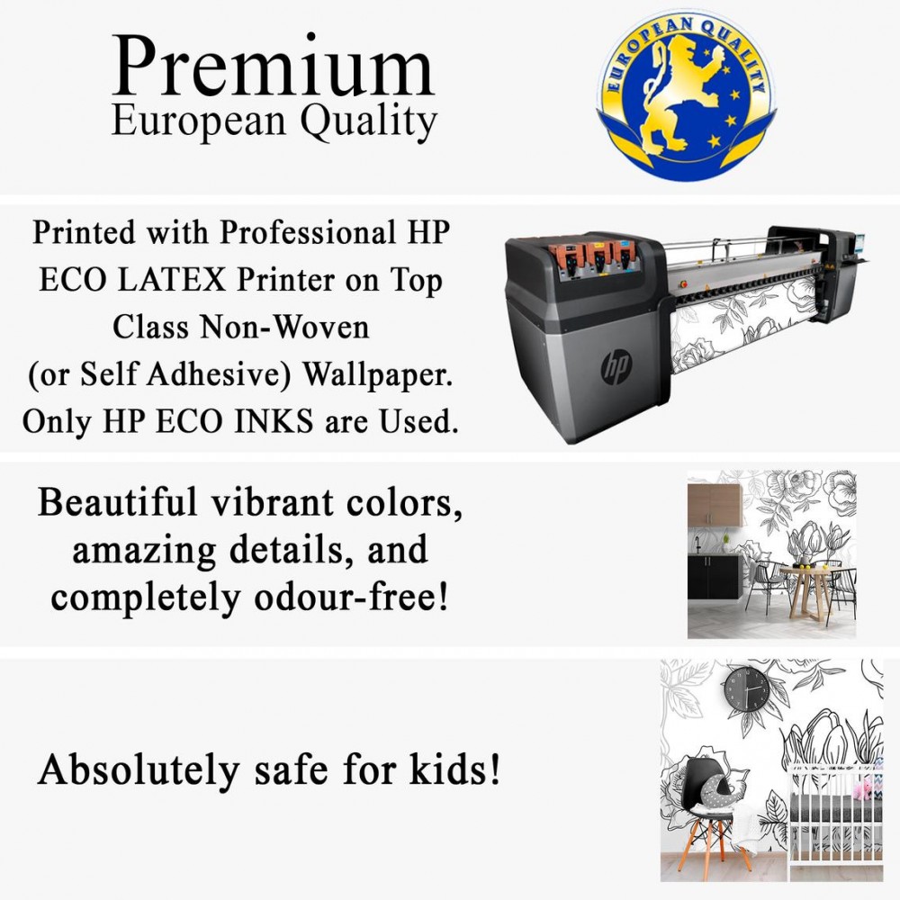 - We offer 2 types of wallpaper material: Easyinstall Vlies / Non-Woven wallpaper or self-adhesive German Wallpaper.